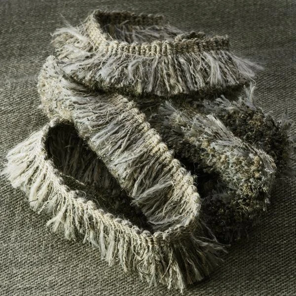 the intermingling silvery grey threads of the surrounding fringe to