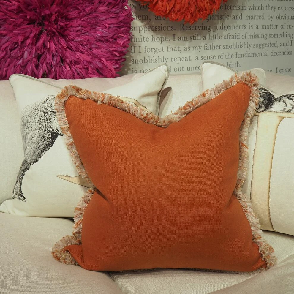 fabric with the luxurious tactility of our . The warm rust coloured linen is brought to life