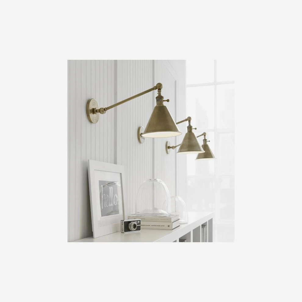 An adjustable wall light in antique brass, Boston combines