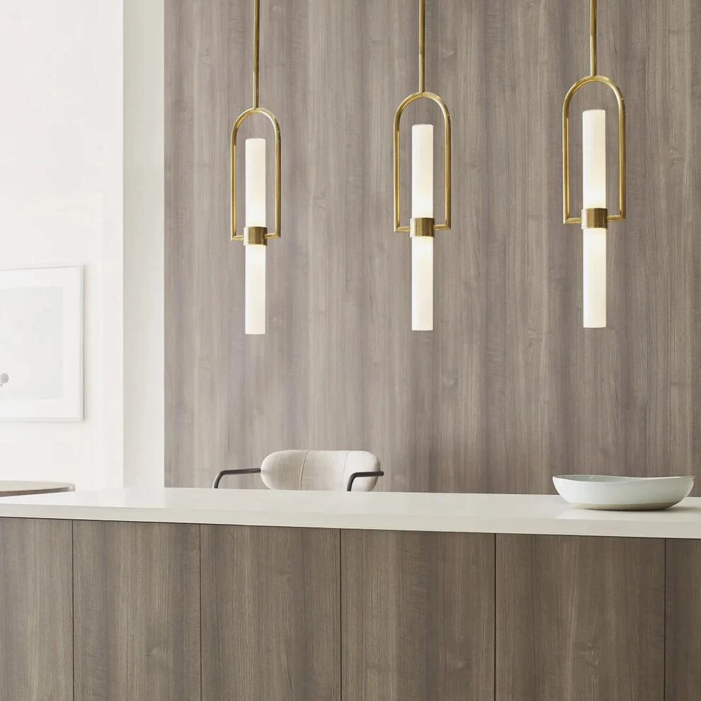 Slim modern pendant light in natural brass