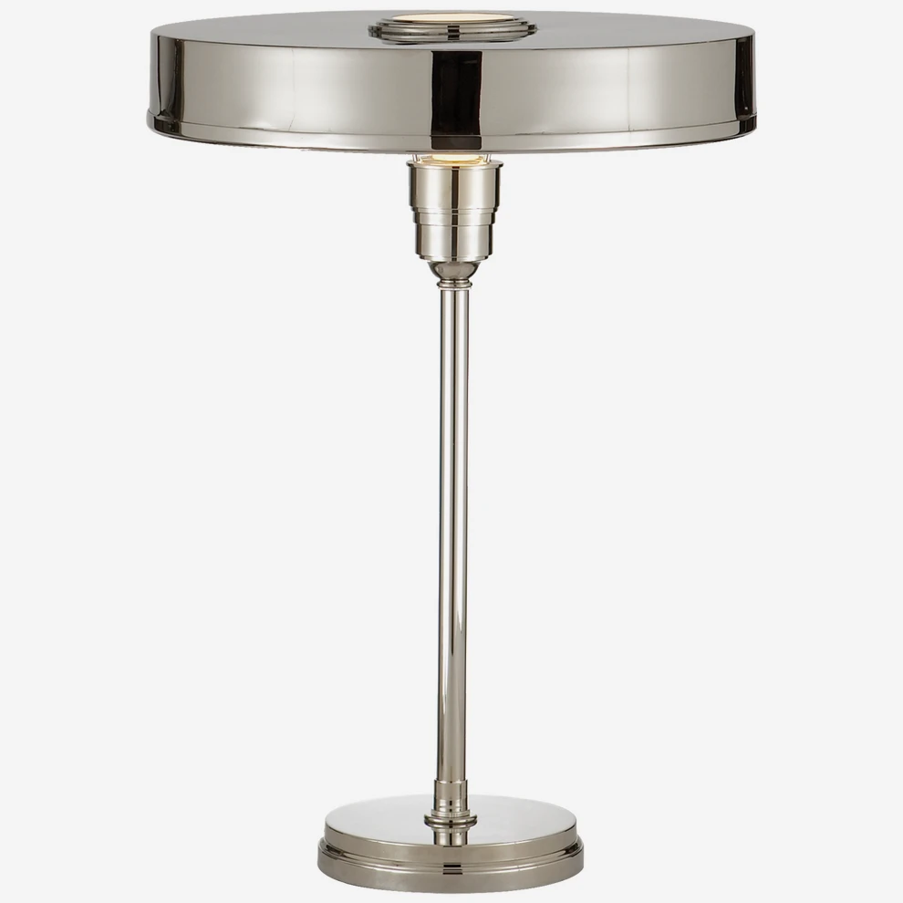 A smart table lamp in polished nickel finish, designed by Thomas