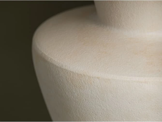 from ivory ceramic with a raw, tactile finish, its trio of stacked,