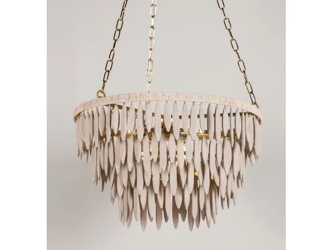 Chandelier. Featuring a beautiful blend of white-washed wood beads