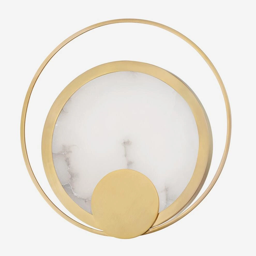 Circular brass and alabaster wall sconce