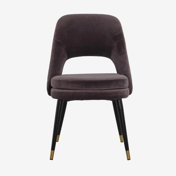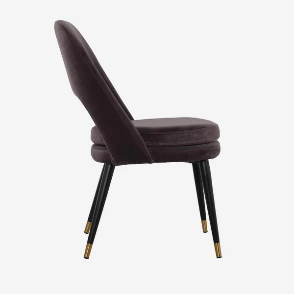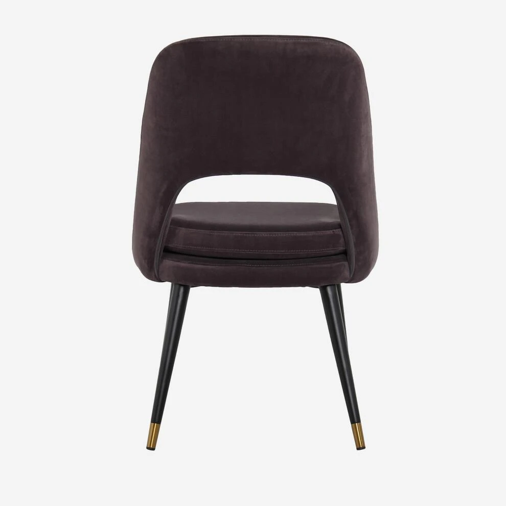 in smooth, deep mink colour velvet with slim legs in contrasting