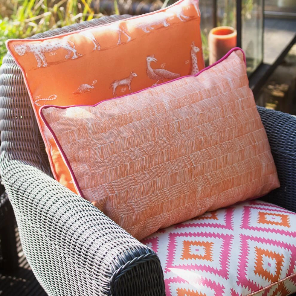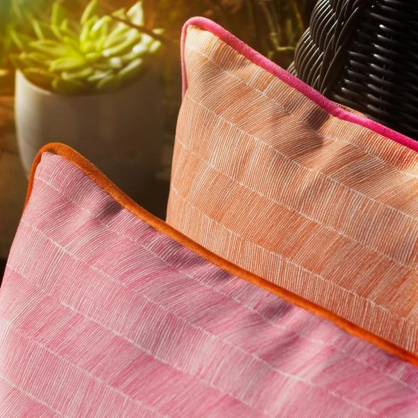 with washable velvet piping in contrasting hot pink, this cushion