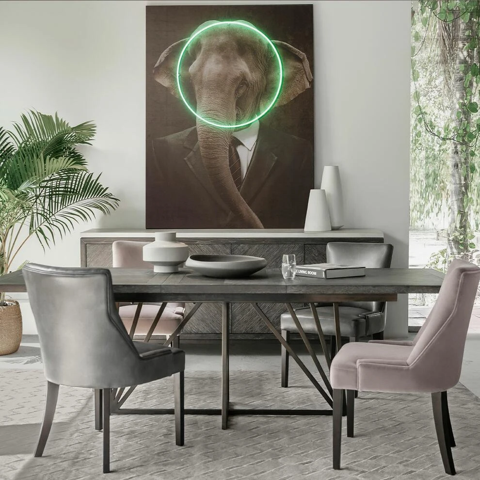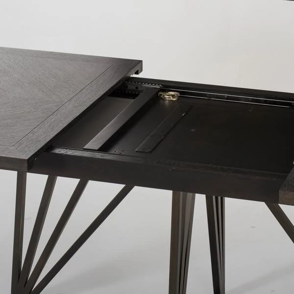 A striking extendable dining table finished in a rich, dark