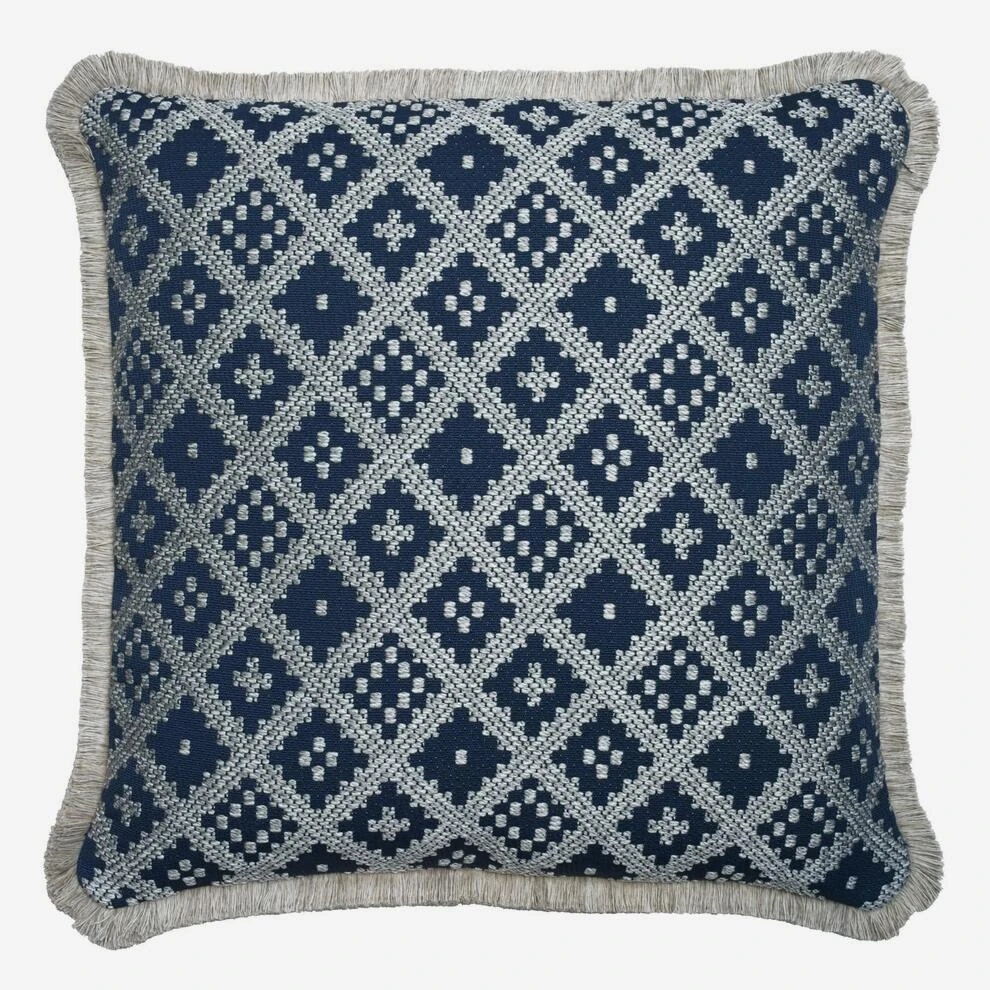 Erba Navy is a sophisticated woven geometric outdoor cushion in