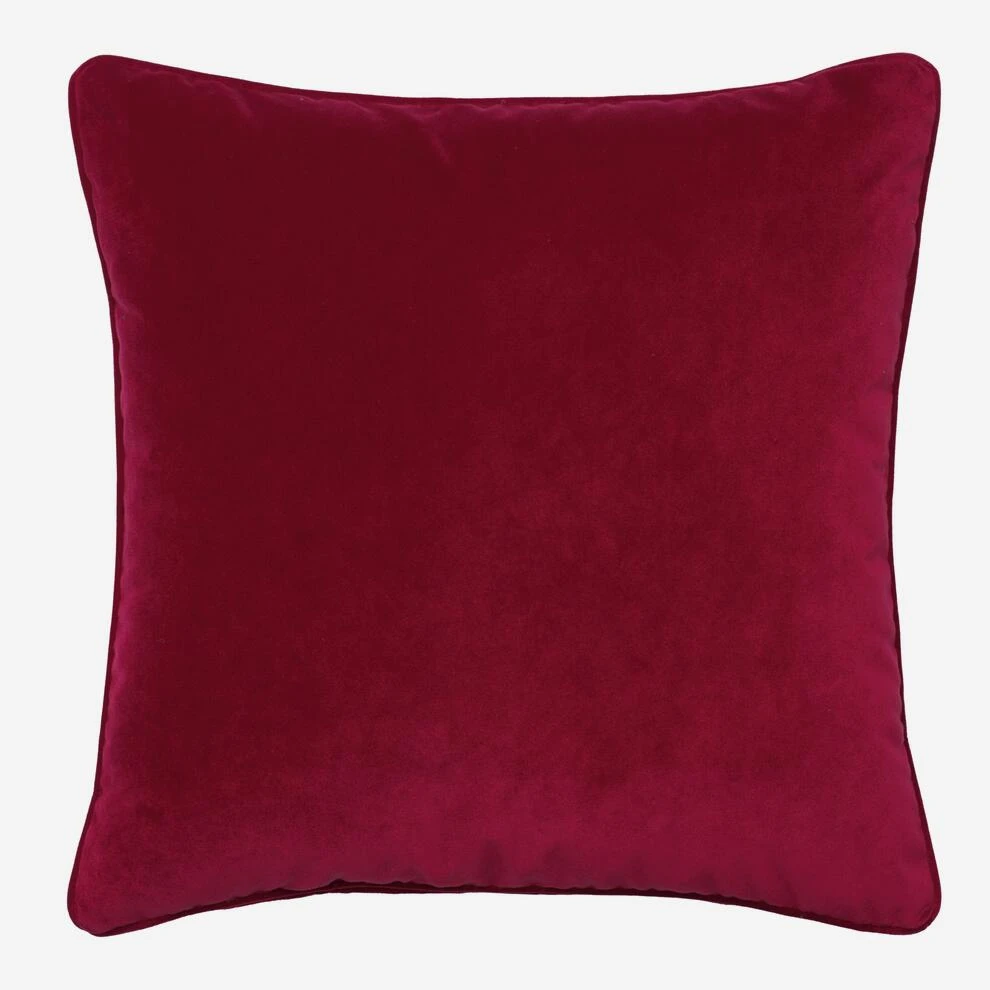 Outdoor velvet cushion in crimson red