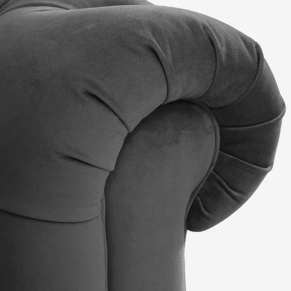 Upholstered contemporary grey velvet Chesterfield sofa