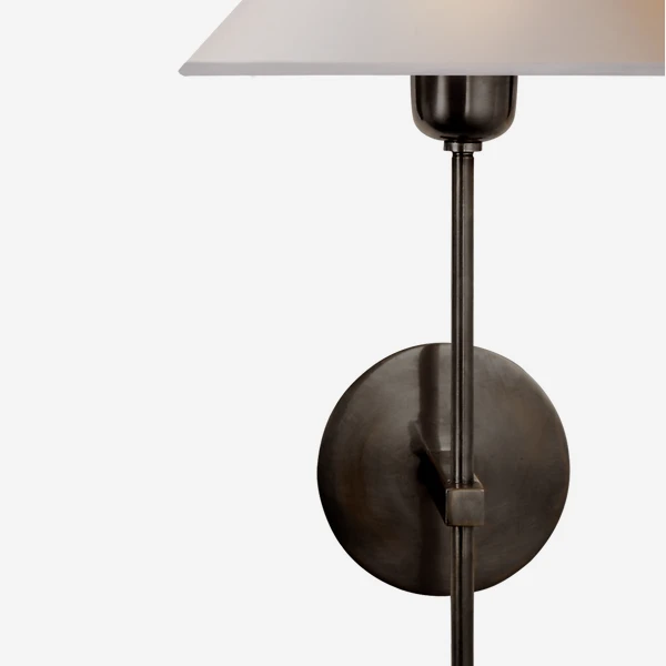 A sweet, bronze wall lamp with an empire linen shade. Hackney