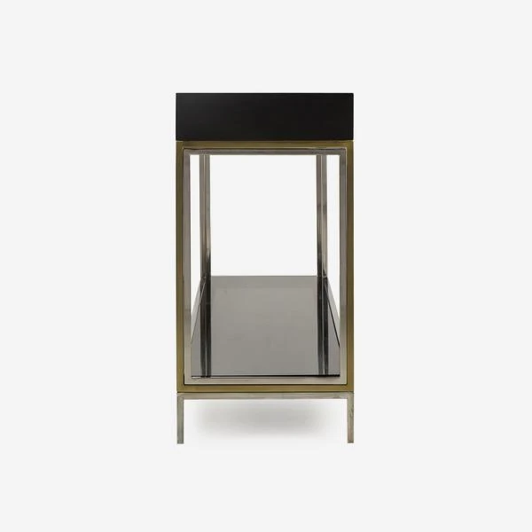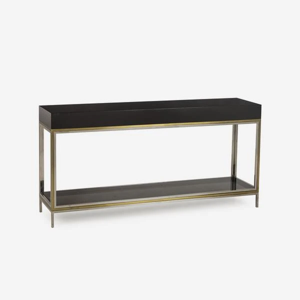 solid black lacquer top and smoked glass lower shelf. This piece