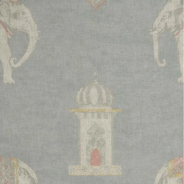 A sky blue linen blend cloth showing large painterly elephants