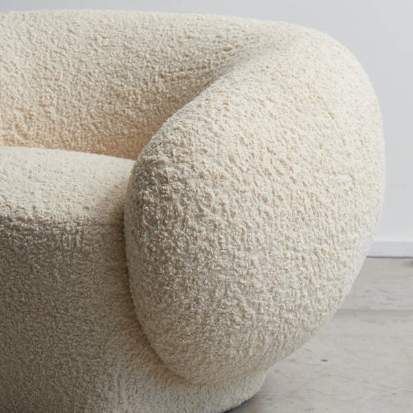 Oversized boucle curved chair in ivory
