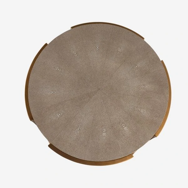 A round side table with a faux shagreen top and undershelf in
