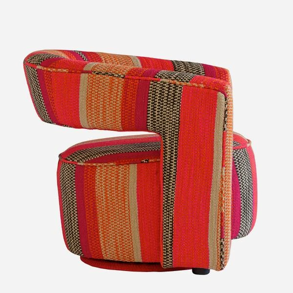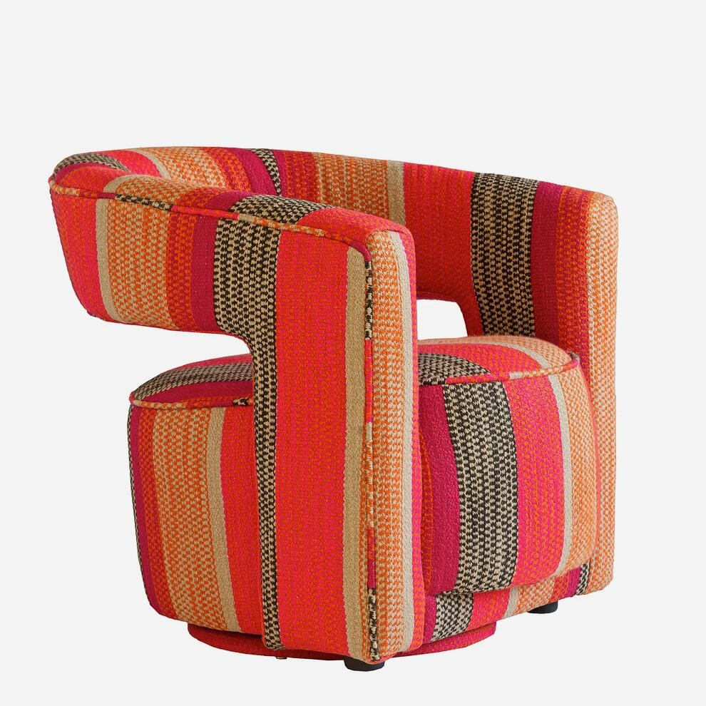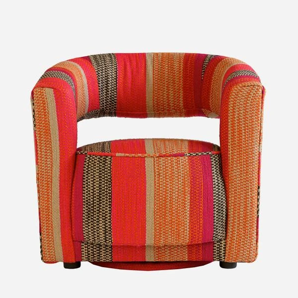Colourful, striped swivel armchair
