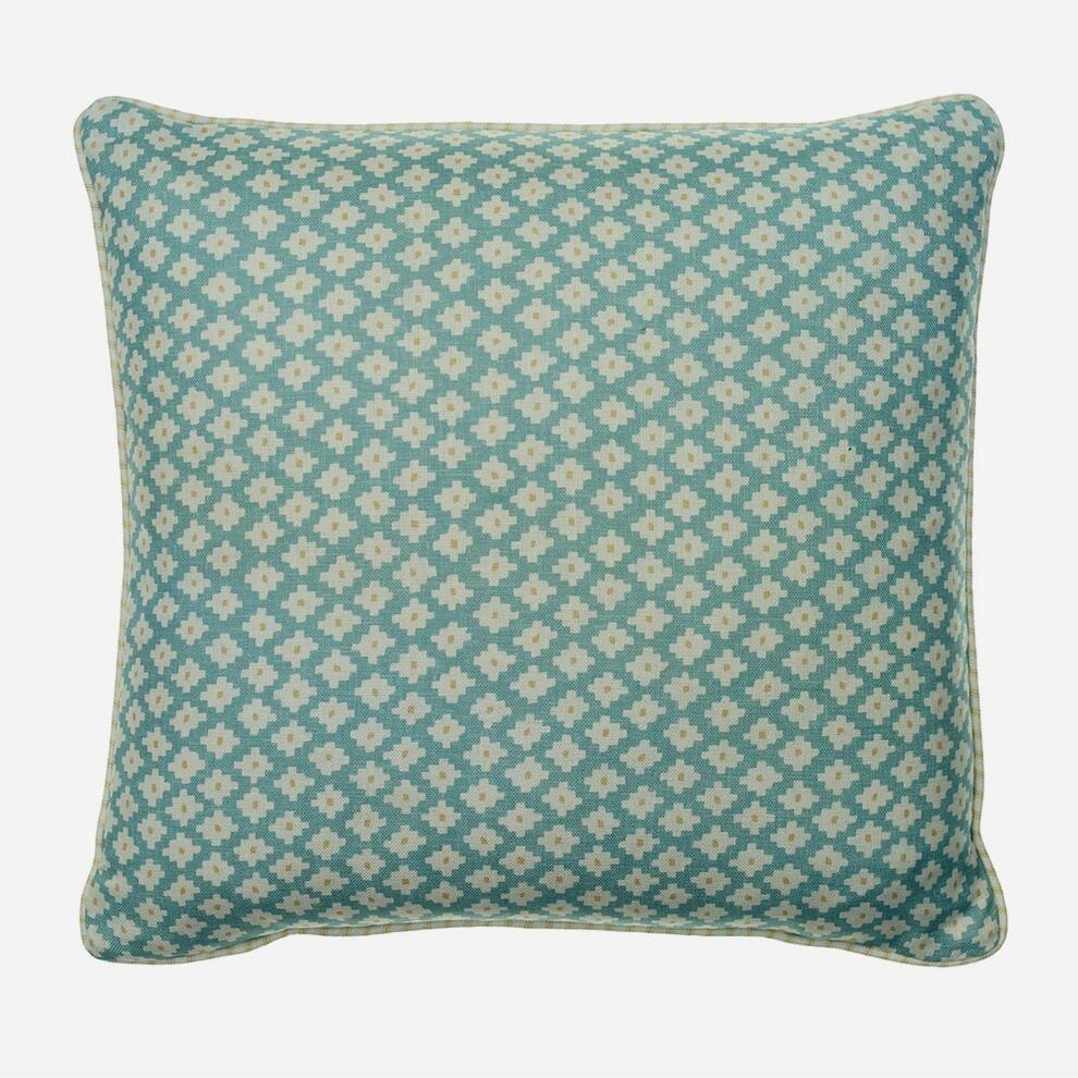 fabric in vibrant Turquoise blue, with a pop of golden yellow.