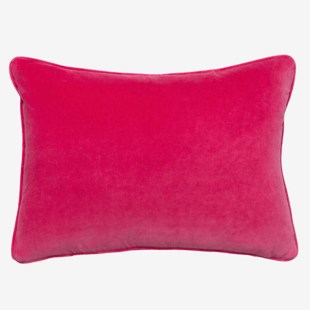 A luxurious, super soft velvet rectangular cushion in pink made
