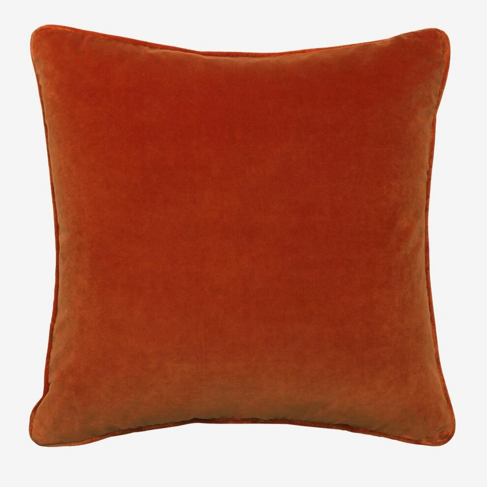 Luxury cotton velvet cushion in earthy orange