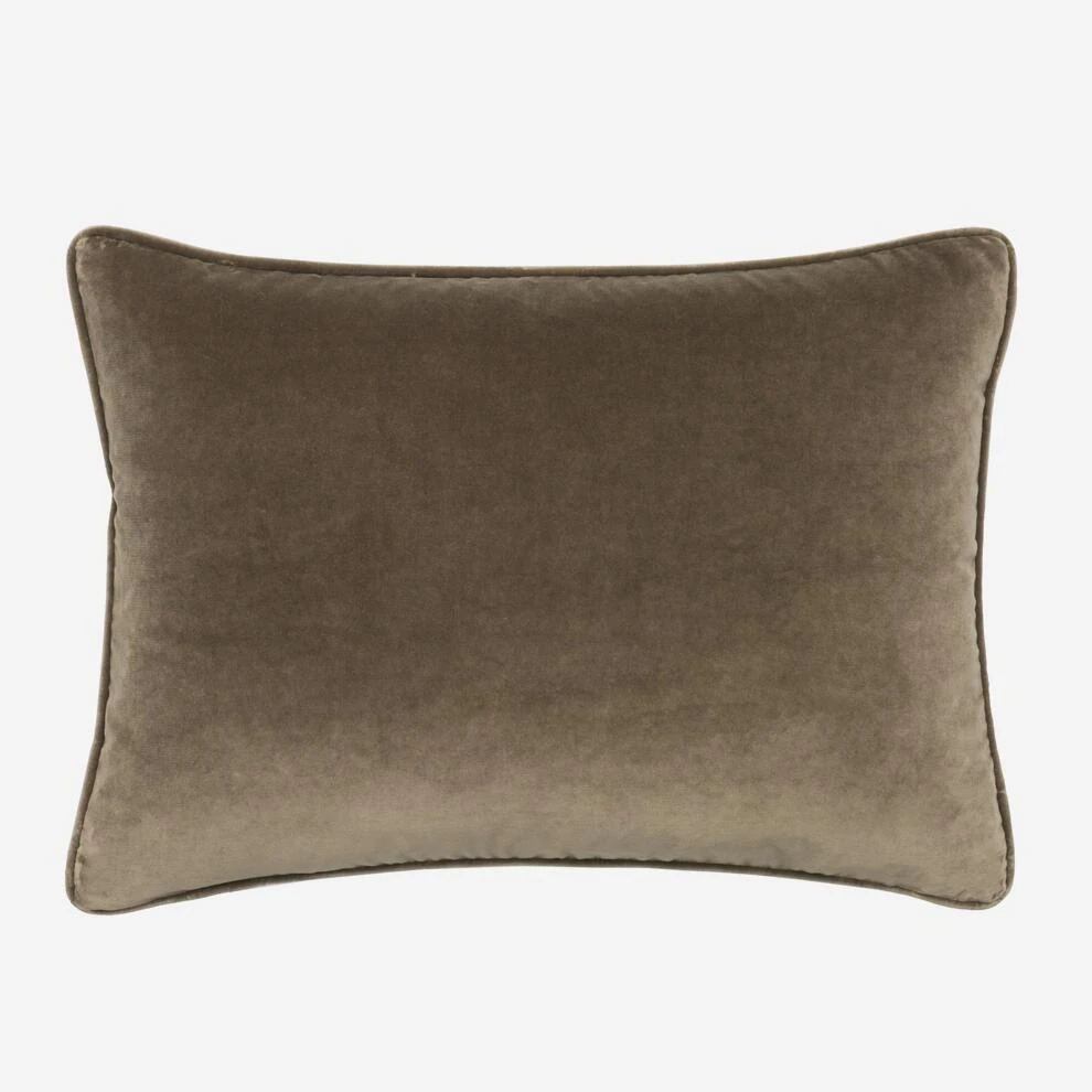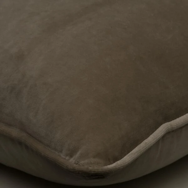 A luxurious, super soft velvet rectangular cushion in grey-brown