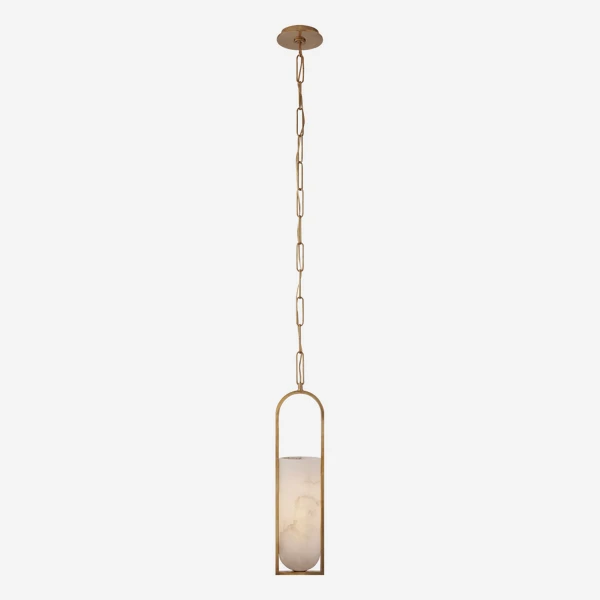 Small elongated pendant in brass with alabaster shade