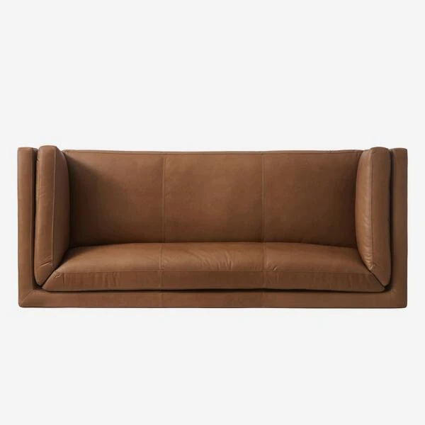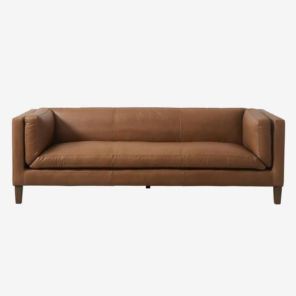 Contemporary low-height sofa in natural rich brown leather