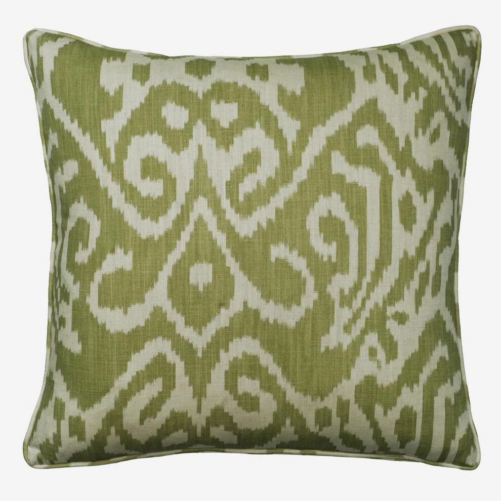 Ikat cotton cushion in leaf green