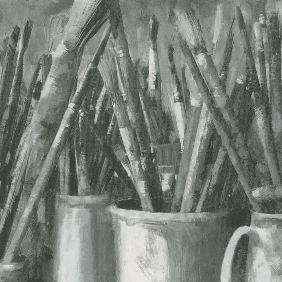 A unique design of an artist’s brushes and painting materials on