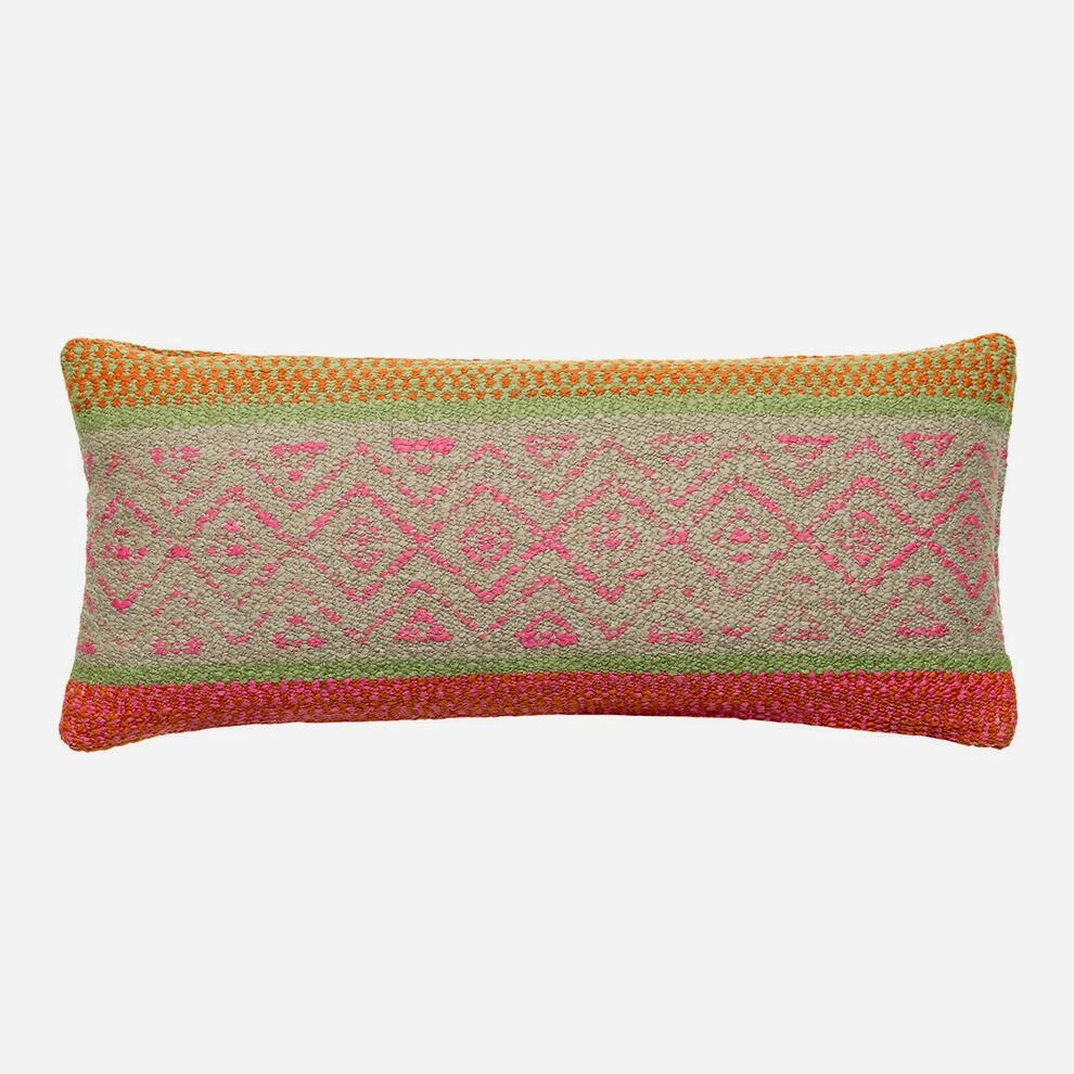 chunky stripes and geometric motifs combining vibrant pink, orange