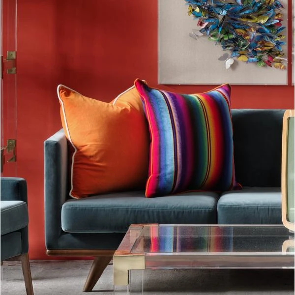 orange velvet cushion with contrast milk piping to add a real pop