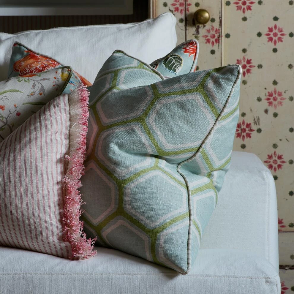 leaf green. Finished off with piping in complementary , Pergola Duck Egg is part of our Secret Garden
