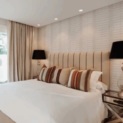 wooden-slatted windows in subtle Ecru.