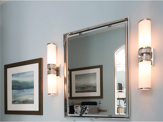 handsome wall sconce, whilst two translucent glass cylinders reach