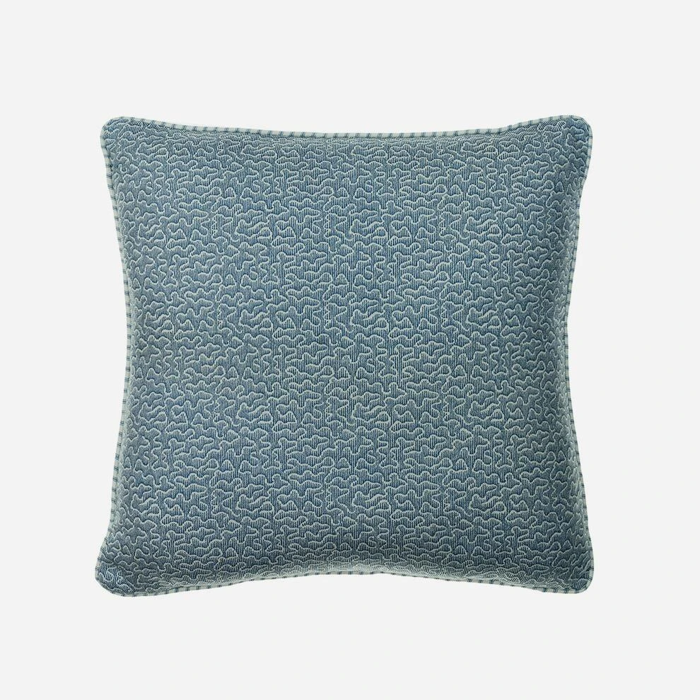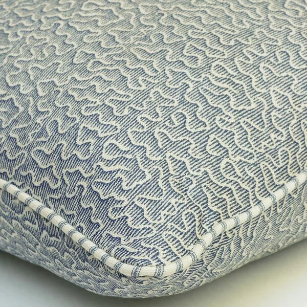 fabric in Denim. The free-flowing squiggle design is reminiscent of