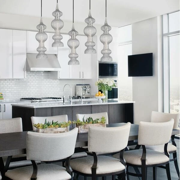 suspended alone, or in a cluster at various lengths.