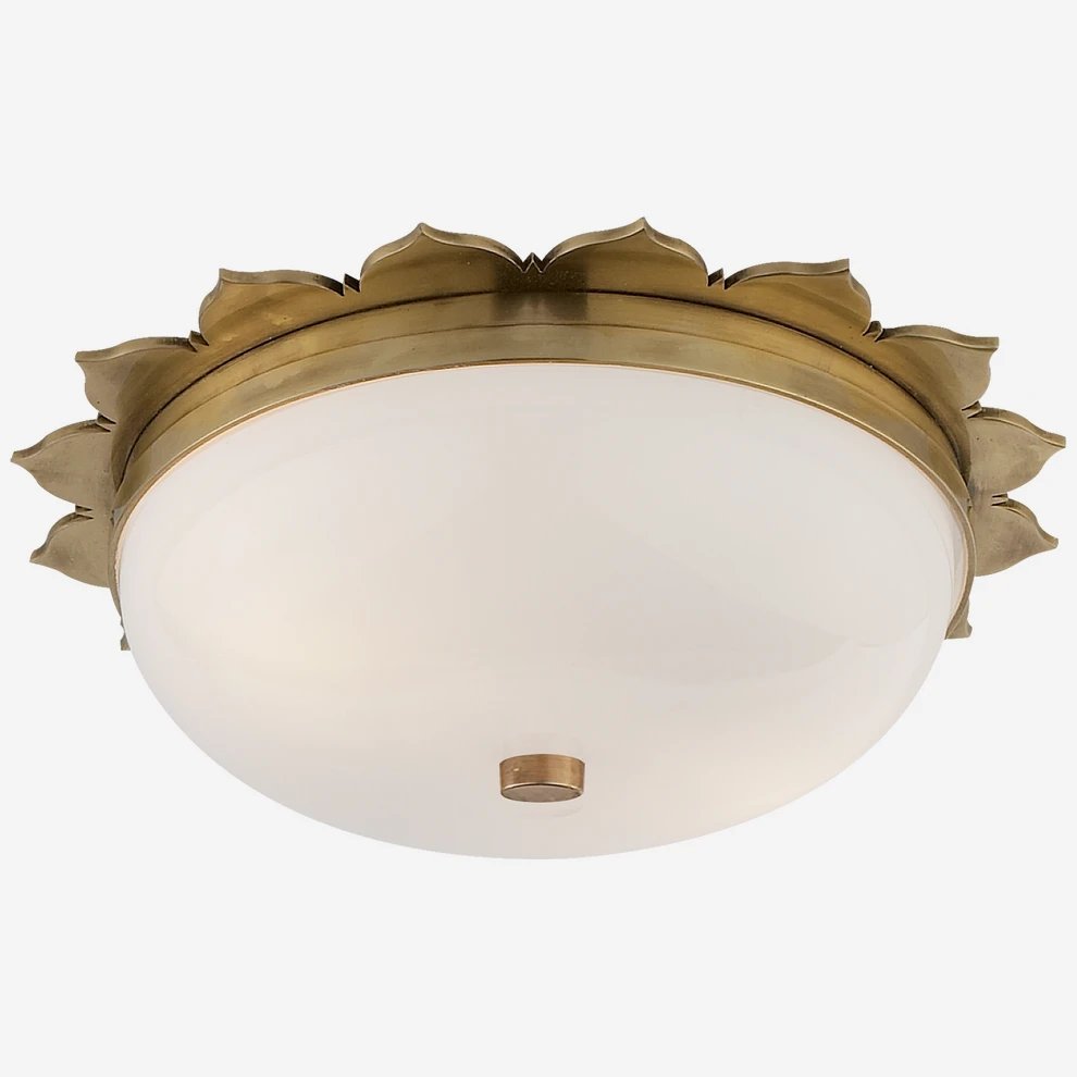 Glass ceiling light with floral petal details in brass