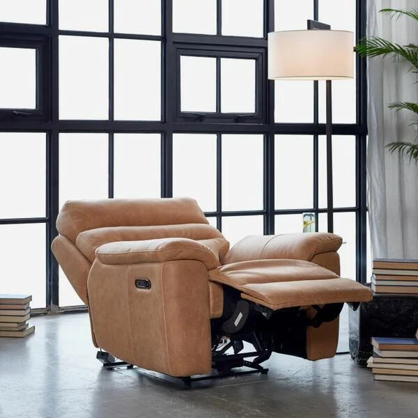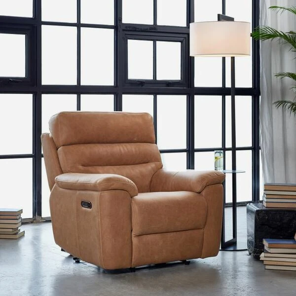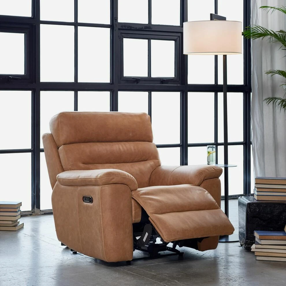 Luxury tan leather power recliner chair