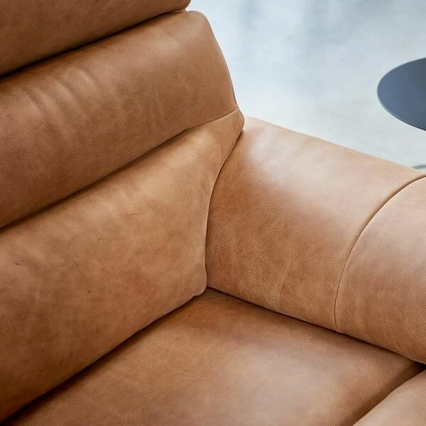 functionality and clean styling. Upholstered in smooth tan leather,