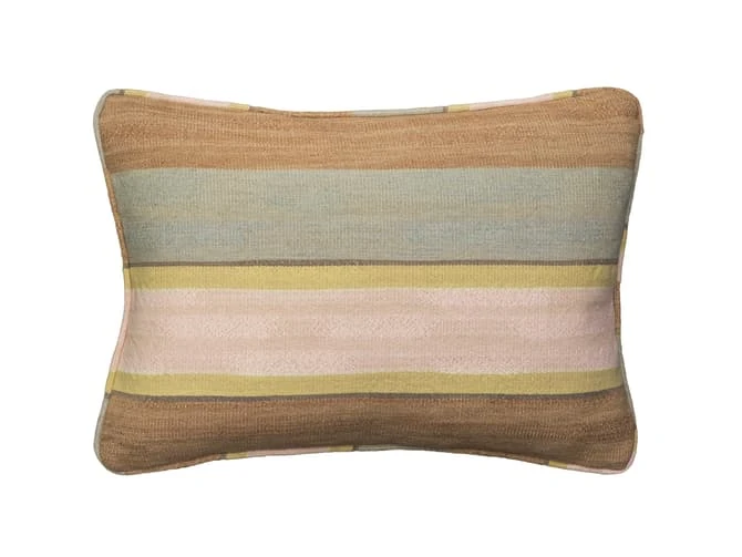 Skiathos Lime Biscuit – Rectangular cushion with stripes in pale blues, blush and sand