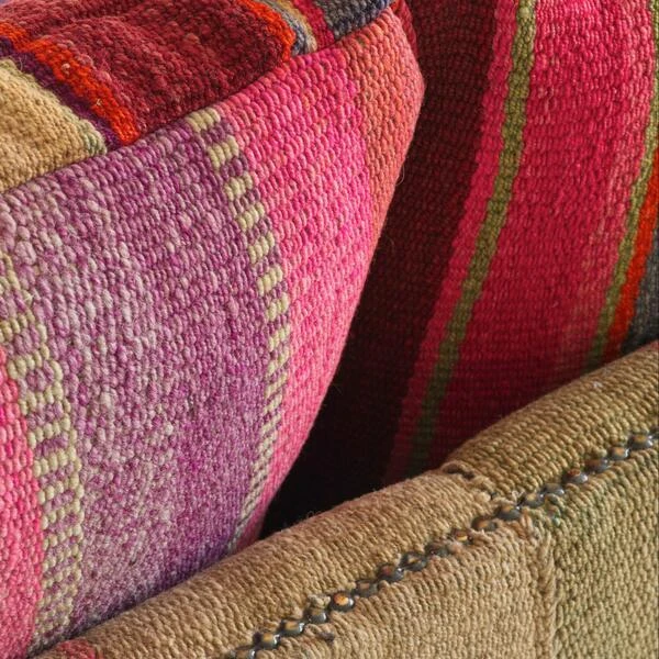 rustic handmade fabrics are made with sheep’s wool and natural dyes