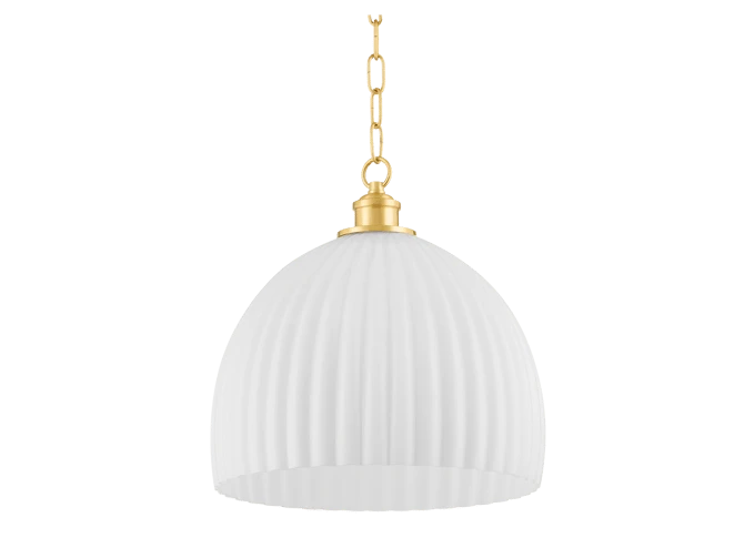 elegance to any space. With its soft, fluted glass shade, Hillary