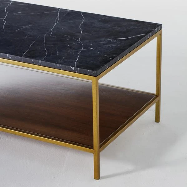 luxurious black marble top. This piece combines Mid-Century style