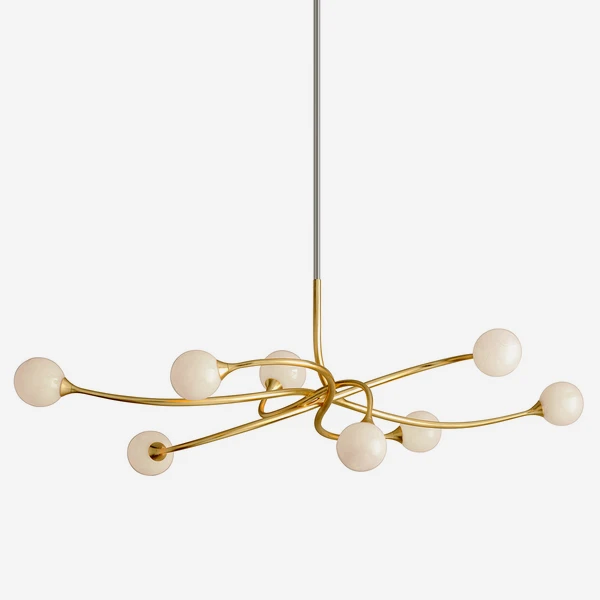 Linear chandelier in gold leaf