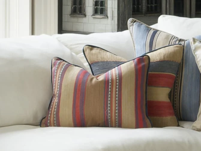 makes fantastic cushions. Use this colourway of sand, red and blue