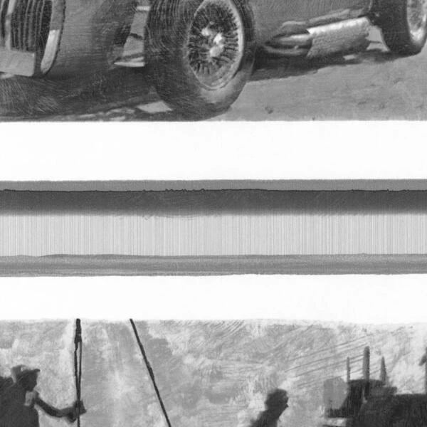 portraits and architecture set on a textured background. It slots