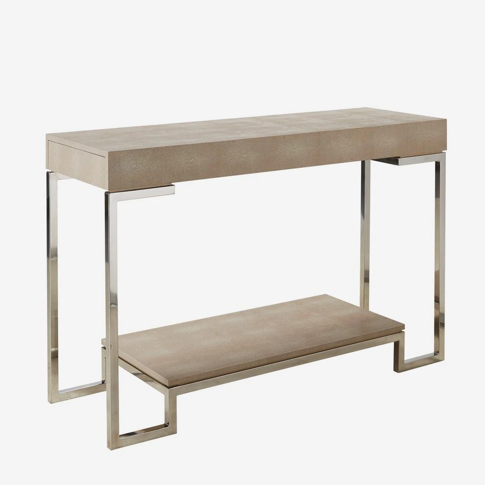cream faux shagreen shelves, Trudy is sure to introduce some