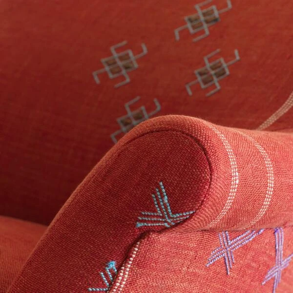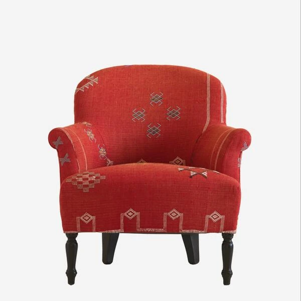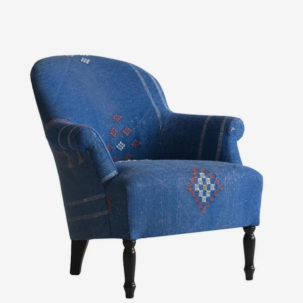 Curved armchair in Moroccan fabric