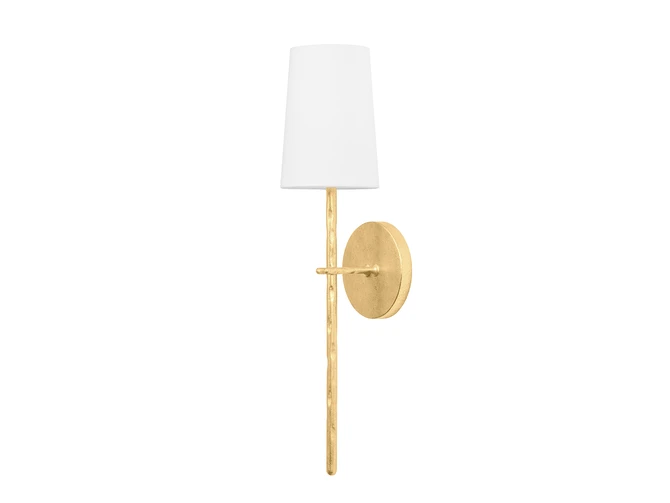tapered white linen candlestick. Finished in hammered Vintage Gold