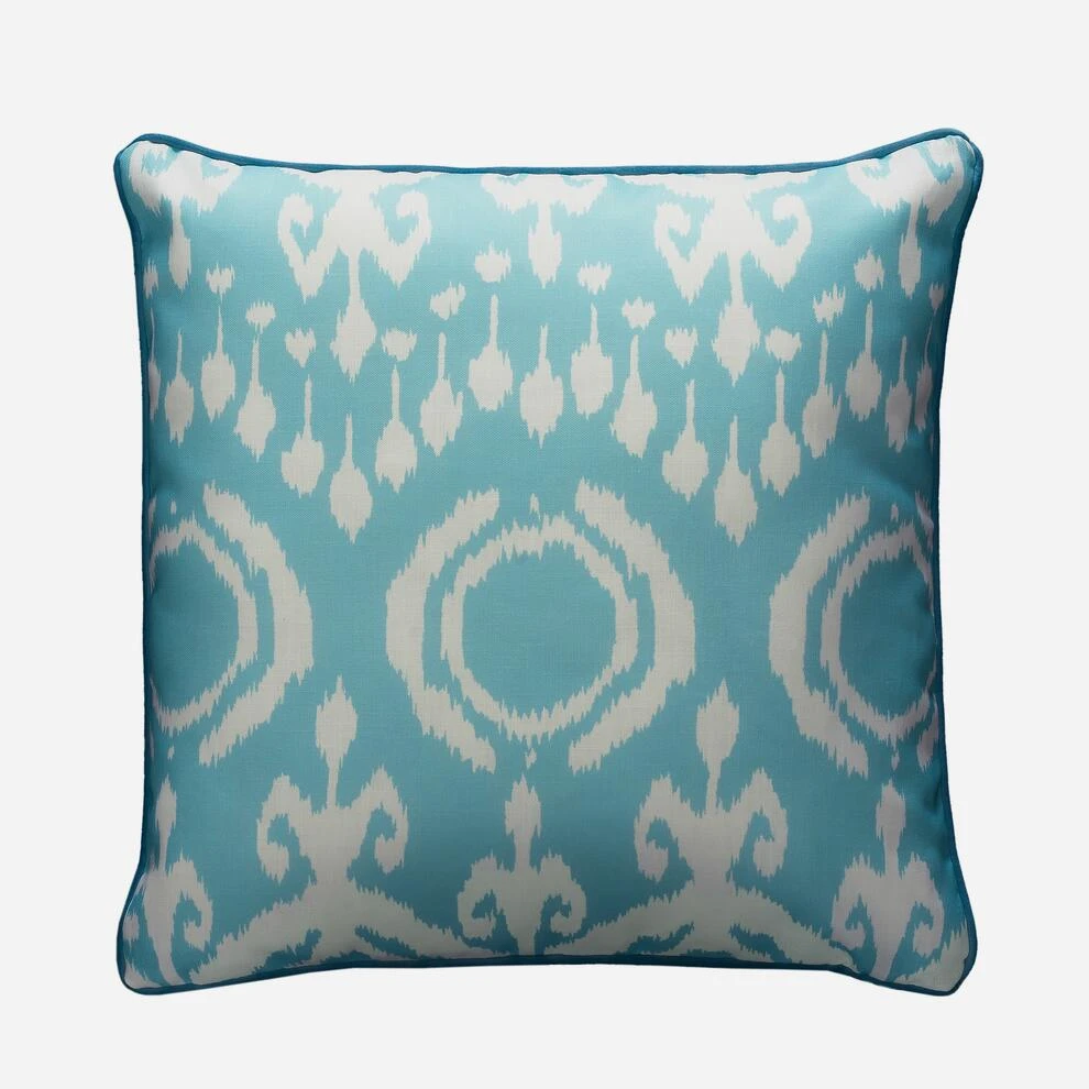 by the traditional ikat prints of Indonesia. In a bright aqua